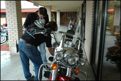 | Fin de journée, on retourne chez EagleRider pour récupérer les motos. La pluie a cessé heureusement. Premiers miles sur les bécanes pour rejoindre le motel. | ||||