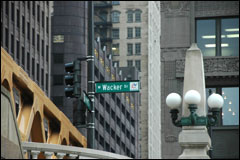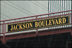 | Nous passons sous Jackson Boulevard qui est la rue dont la tradition prétend que la Route 66 débutait ici. | ||||