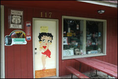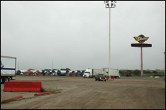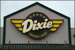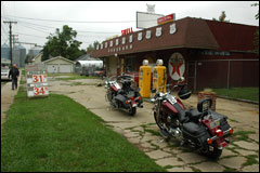 | Le Dixie Truckers Home, siège de l'association de la Route 66 en Illinois. Le premier routier a été créé ici en 1928, est ouvert 24h sur 24 et n'a fermé qu'une seule journée, pour cause d'incendie, depuis cette date. Aujourd'hui pas de risque, avec ce qu'il pleut . . . les motards mettent même l'équipement complet! | ||||
