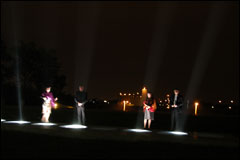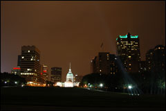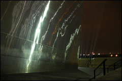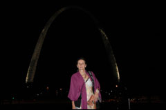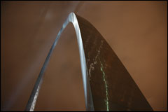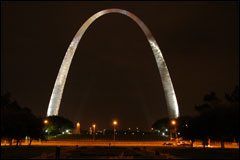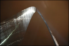| Puis quelques effets de lumière sous l'Arche des Pionniers, The Gateway Arch, symbole de la ville de St Louis le long du Mississippi, mais aussi de l'état du Missouri, cette arche a été construite en 1965 en l'honneur des pionniers de la conquête de l'ouest. Construite en plaques d'acier inox de 6mm d'épaisseur, elle fait 192m de haut et autant de large. Sa section est un triangle équilatéral de 16,5m de coté au niveau de la base, et 5m au sommet. Sa forme est celle de la fonction mathématique cosinus hyperbolique, correspondant à la forme d'une chaîne qu'on laisse pendre en la tenant par ses extrémités. | ||||