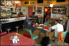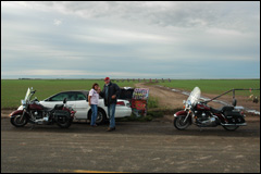 Adrian et son Mid Point, nous voilà donc à la moitié du chemin, 1139 de miles de fait et autant à parcourir; l'endroit est plaisant, la tenancière sympathique et les gâteaux à la crème délicieux. L'autocollant RMN est apposé bien en vue par la propriétaire elle-même. |