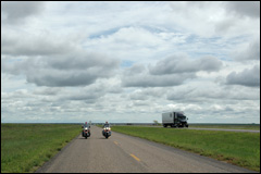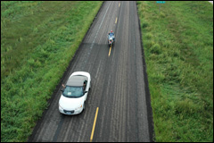 Encore une route non-goudronnée. Petite pause pour laisser retomber la poussière. |