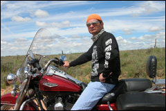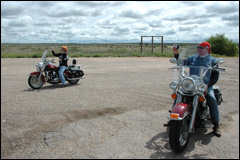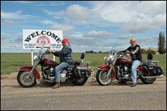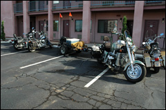 Arrivée à Tucumcari: total look pour un motel et quelques gros cubes (sous toutes ses formes) déjà installés à l'hôtel! La moto du président du club moto du Texas a un moteur V8 et pèse plus 500 kg, pas de problème pour encore tracter une remorque. |