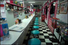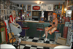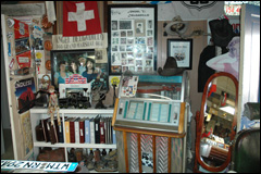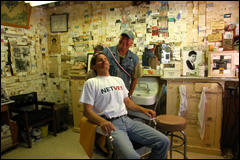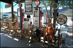 Seligman, la seule, l'unique, l'incontournable, la boutique d'Angel Delgadillo, barbier de son état, mais plus connu comme un des fondateurs de la 1ère association pour la Route 66. Il n'est jamais allé plus loin que le village voisin, mais le Monde vient à lui. Il n'y a qu'à voir le nombre de cars déchargeant là son flot de touristes avant d'aller admirer les failles du Grand Canyon. Une affaire qui roule! Heureusement c'est le seul endroit de la Route 66 avec tant de touristes. |