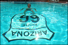 Kingman: quand nous pouvons goûter aux joies de la piscine c'est que l'étape était courte. On y prend même les deux pieds sur la 66 dans ce motel entièrement dédié à la Route. |