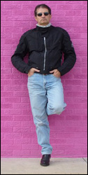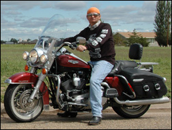 Pierre Rochat dit Pierrot un garagiste rock'n'roll biker sur une Harley Dyna Wide Glide 1450 en Europe